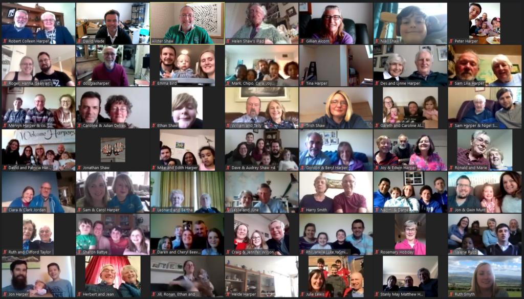 As North America started to wake, they joined us in the afternoon for our Family tree talk by Gordon Harper (Ireland) and David Harper (Canada). Followed by breakout rooms discussing A.I., health and healing, farming, family history, and chat and banter. It was wonderful to hear from our oldest member, Uncle Sam, who will be 100 years old in October. Normally not one to embrace the stage, Zoom provided the perfect means for him to share his words of wisdom to an eager audience. The good news of the birth of the youngest member, Zeph Robert Harper born on Friday 17thApril 2020 in the Rotunda Hospital in Dublin. Enabled us to congratulate the proud parents Graham and Cathriona Harper, and big brother Reuben.